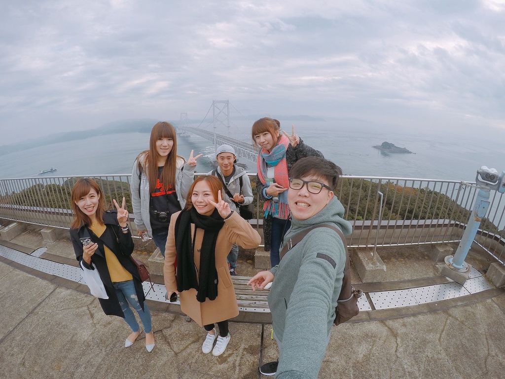 登頂之後眺望坐落在瀨戶內海上的鳴門大橋