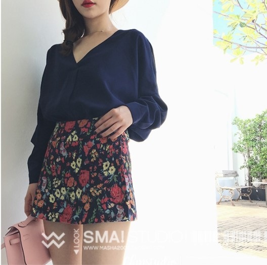 ▷▷▷新款寬松顯瘦純色套頭系帶v領長袖襯衫女夏季韓範學生百搭上衣潮