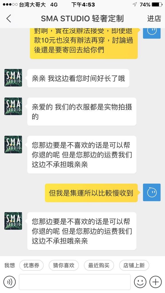 我會上傳跟店家的對話紀錄截圖以茲證明