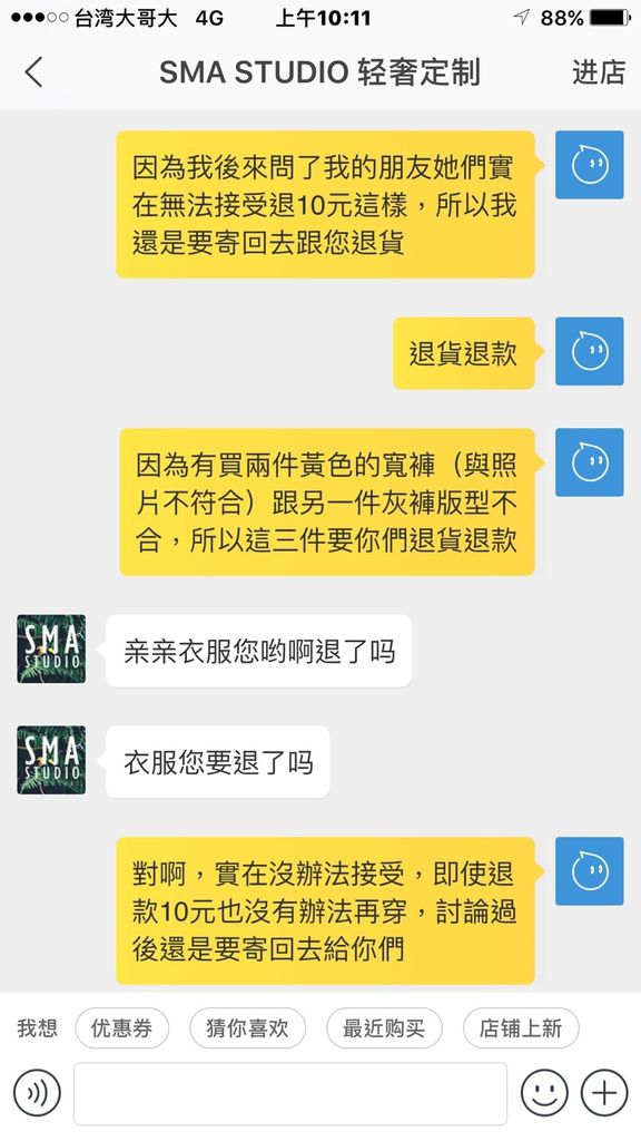 之前我都是認賠,但是因為這次同一間退了三件