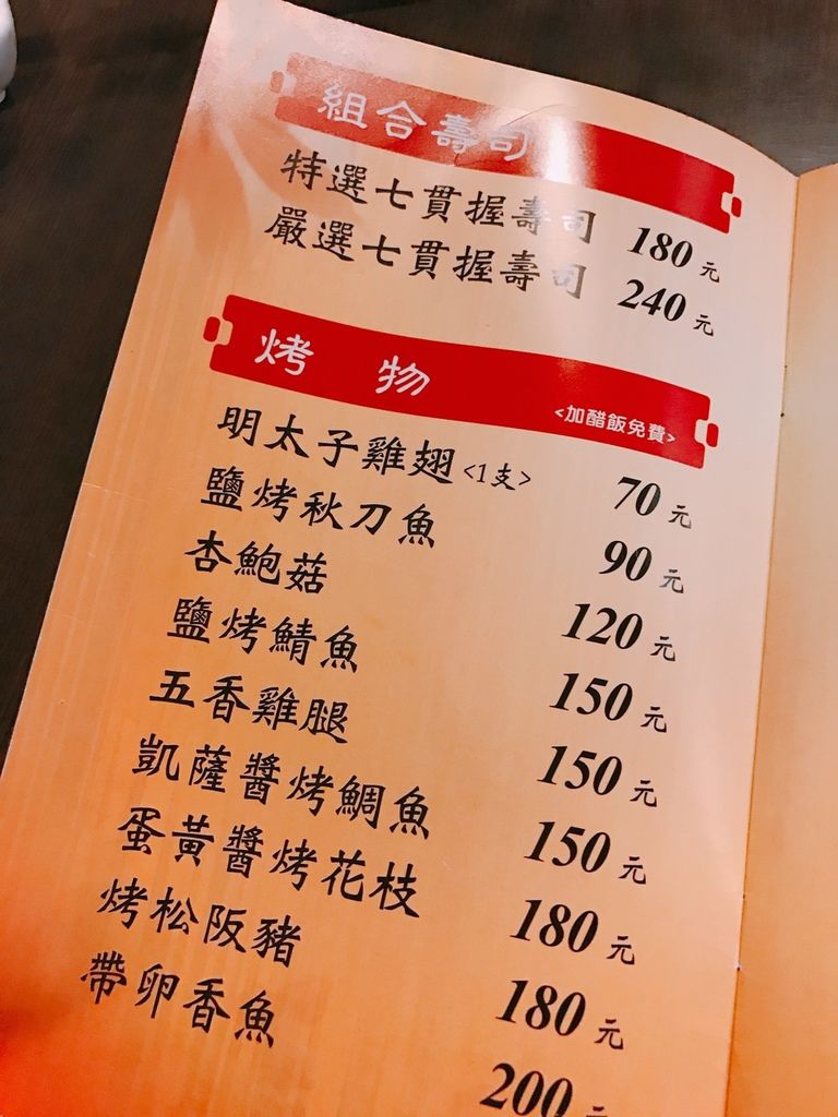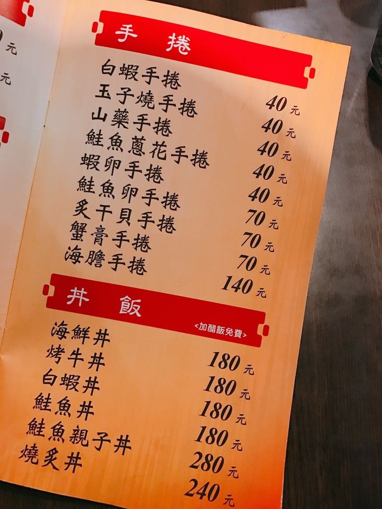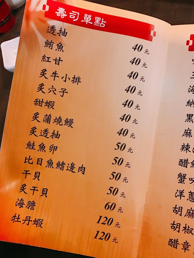 鮪魚/紅甘/星鰻/燒炙透抽/比目魚/鮭魚卵/鮭魚蔥花