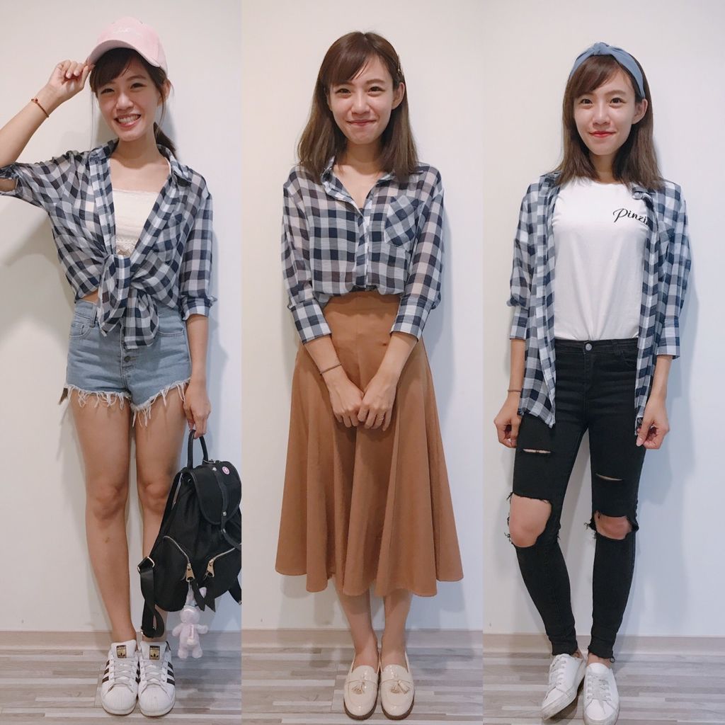 這個格子上衣的長度可以有很多造型