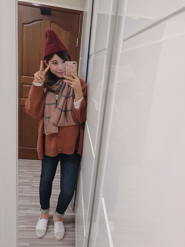 針織外套即使穿到再冷一些,圍上圍巾也是個不錯的選擇