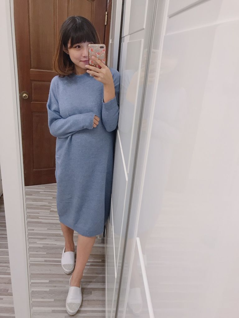 鬆軟質感雪花毛衣長洋(藍)