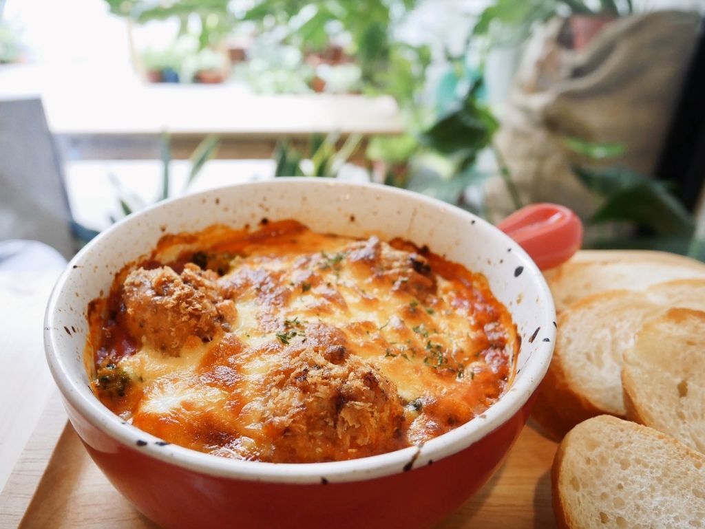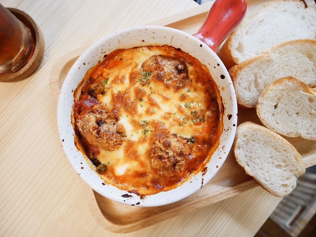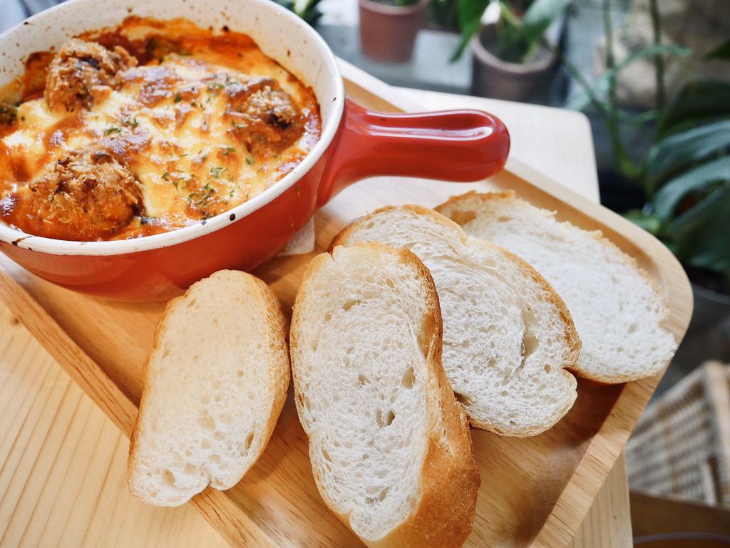 還有附上一份麵包,可以搭配焗烤配料一起吃