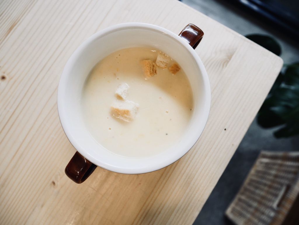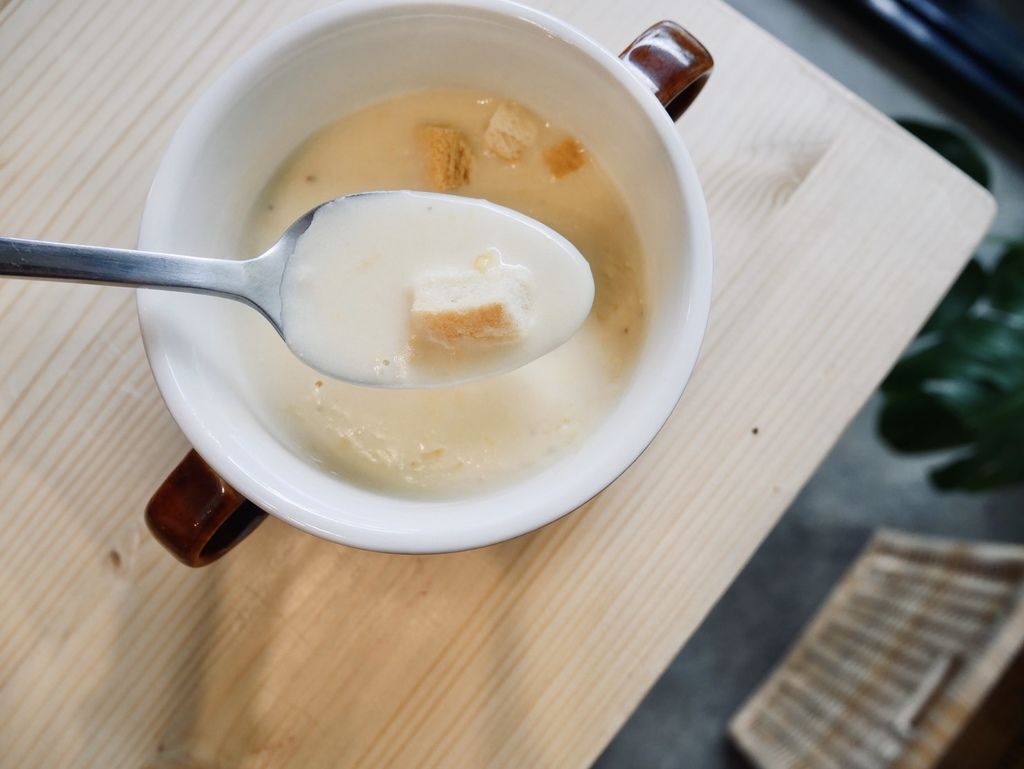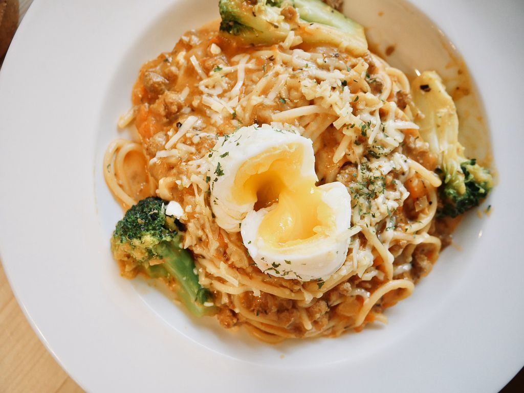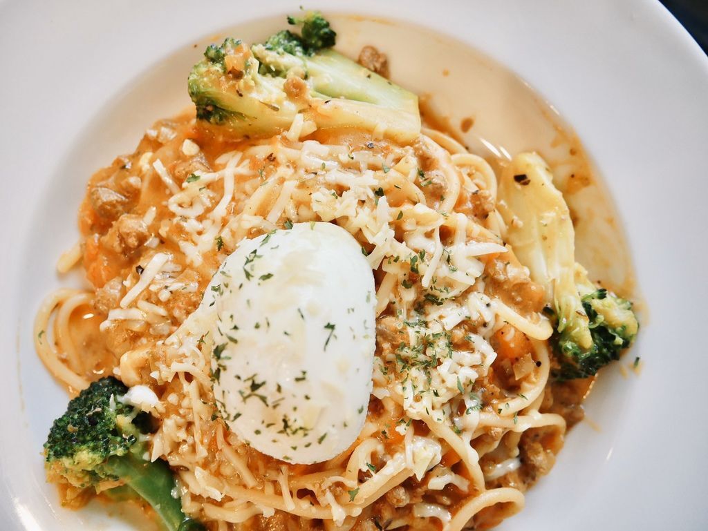 因為水波蛋肉醬麵是商業午餐,所以會附濃湯跟飲料