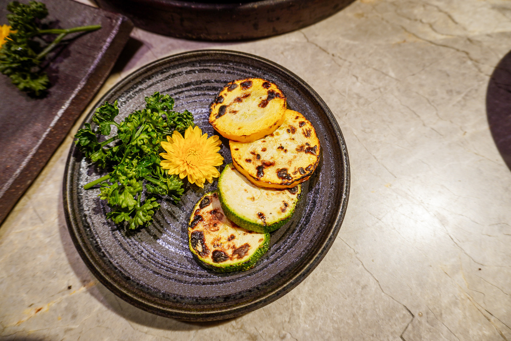 與板腱做搭當的是新鮮的櫛瓜,烤過之後更能彰顯它的甜度