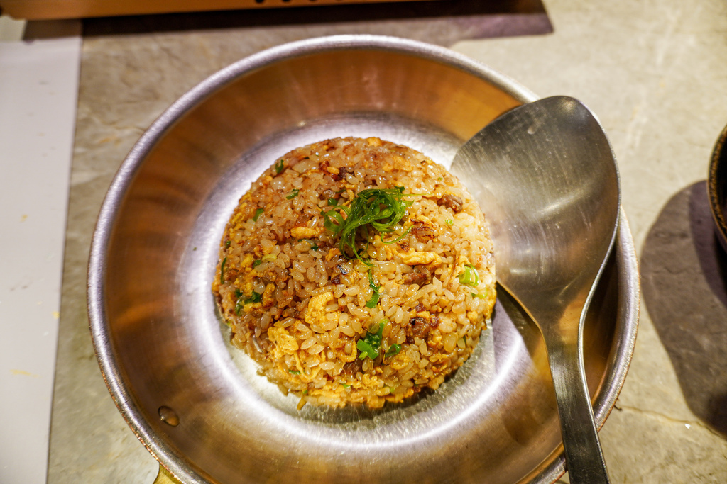 沒有任何鹽跟味素,淡淡的牛肉香氣,味道算是很清爽的炒飯